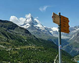 Die grosse Sonnenterasse mit einmaligem Blick auf das Matterhorn lädt zum Verweilen und Geniessen ein.